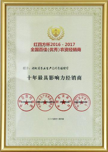 | 全國百佳(優秀)經銷商“十年最具影響力經銷商” |