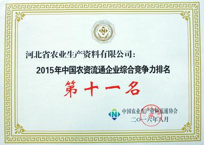 | 中國農資流通企業綜合競爭力排名第11名 |