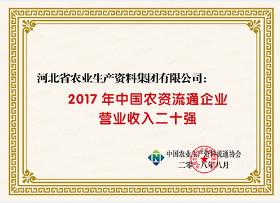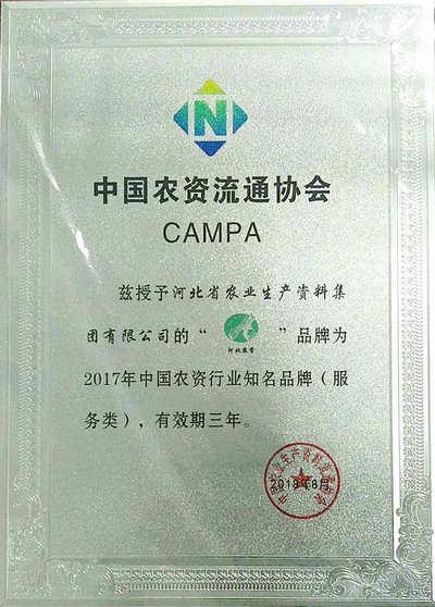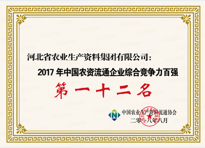 集團公司榮獲中國農資流通企業綜合競爭力百強、中國農資行業知名品牌