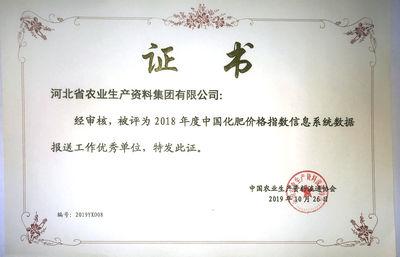 集團公司榮獲2019年度中國化肥價格指數(shù)信息系統(tǒng)數(shù)據(jù)報送工作優(yōu)秀單位