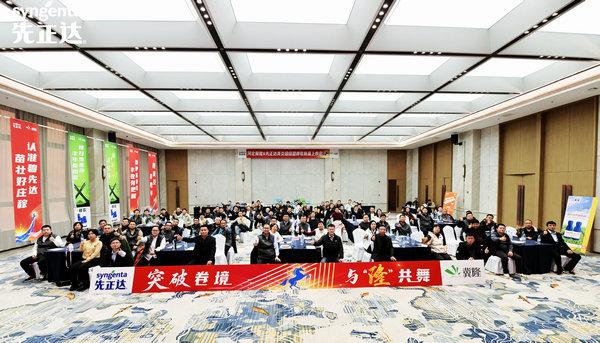 本網訊 12月8日,河北省農資集團旗下河北冀隆生物科技有限公司攜手先正達集團舉辦“突破卷境、與‘隆’共舞——京津晉冀2026年‘棒歌’上市會暨‘美炎’啟動會”。大會深度解讀公司戰略、展示創新產品、規劃市場布局,共同開啟農業植保解決方案的新篇章。來自河北、天津等地的核心經銷商和行業伙伴齊聚一堂,共同見證先正達核心產品—“棒歌”的全新亮相,共商2026年農資市場發展新策略。