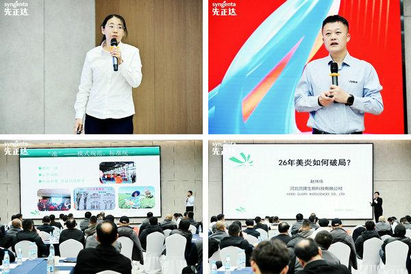 先正達華北大區市場部主任劉兆峰系統講解了“棒歌”產品應用技術,明確了“必贏行動”實施規劃;先正達京津晉冀省區經理韓愛君發布省區三年發展戰略及2026年攻堅目標。最后,冀隆公司針對產品政策與渠道管理規范進行解讀。